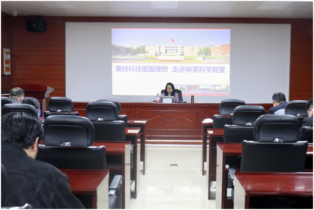 师生作“秉持科技报国理想,走进神圣科学殿堂”学术报告。报告由学院副院长王辉主持,学院全体教师、研究生和部分本科生代表参加。