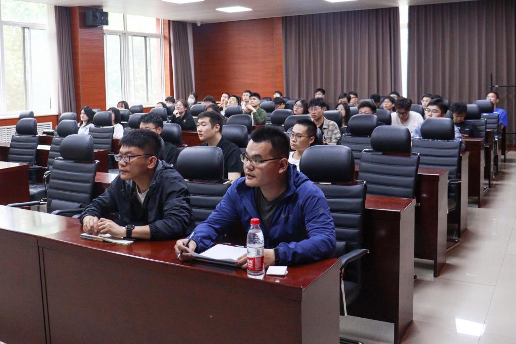师生作“基于不同温度养护的胶结充填体卸围压损伤演化规律研究”学术报告。学院相关专业教师、研究生和部分本科生代表参加。