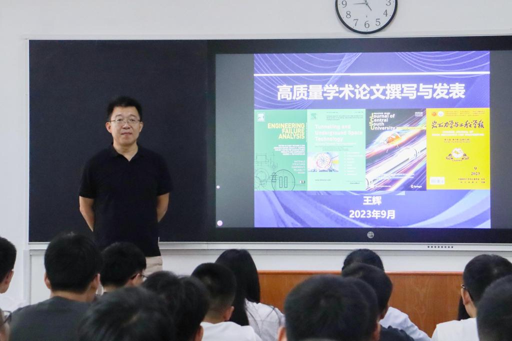 副院长王辉在东校园5#301为2023级全体研究生作“高质量学术论文撰写与发表”学术讲座。