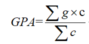 g为该课程成绩,c 为该课程所占学分,GPA为绩点。绩点即所有学业成绩乘以所占学分除以总学分。